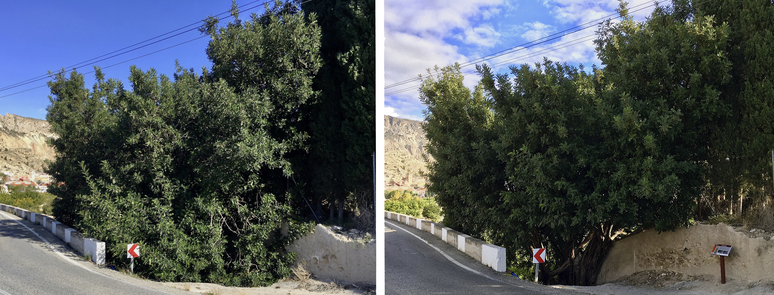 El Garrobo, antes y después de su salvaguardia y señalización. Fotografías de Jesús Joaquín López Moreno (2024 y 2025)